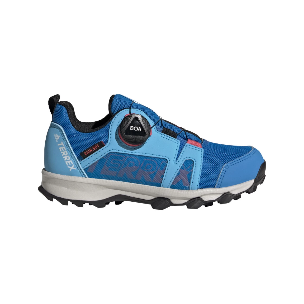 Der Adidas Terrex Agravic Boa R.RDY K ist ein leichter Wanderschuh für Kinder, der auch als Freizeitschuh eine optimale Figur macht. Mit seinem sockenartigem Aufbau und dem Boa® Schnellverschlusssystem bietet er einen passgenauen Sitz und eine superbequemes Tragegefühl. Die Traxion Aussensohle ist rutschhemmend und ermöglicht einen optimalen Halt. Dank der Rain. RDY Membran ist der Terrex Agravic Boa R.RDY K wasserdicht und sorgt so für trockene Füsse.