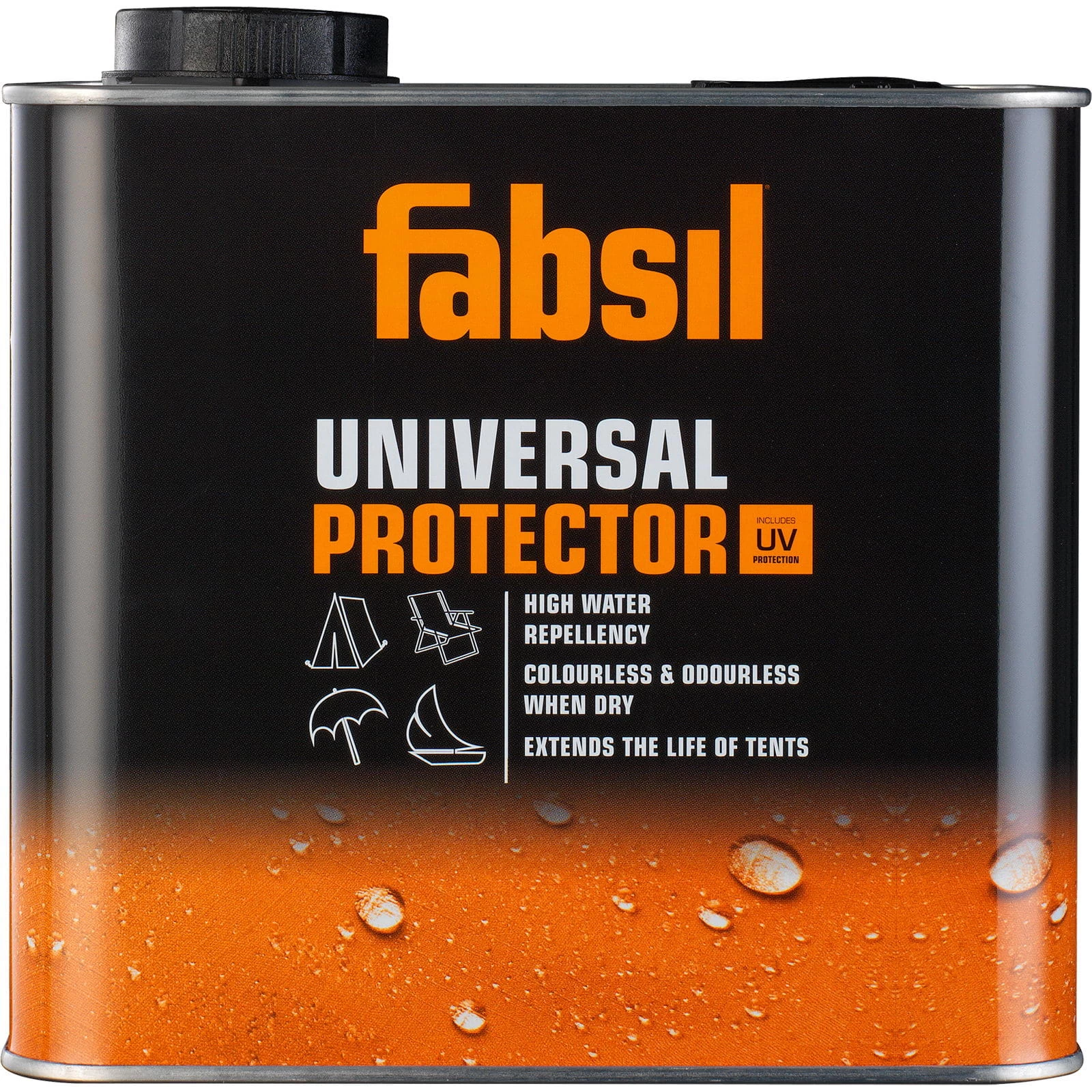 Fabsil Universal Silicone Waterproofer +UV erneuert die ursprüngliche wasserabweisende und nicht wasserabweisende Ausrüstung von hochwertigen Outdoor Produkten. Es wirkt auf einer Vielzahl von verschiedenen Materialien inklusive Leinen, Baumwolle, Polyester und Nylon. Geeignet für Zelte, Rucksäcke, Bootabdeckungen, Markisen, Gartenmöbel oder Cabrio Verdecke. Sehr wirkungsvolle, farblose und auf Silikonbasis hergestellte Imprägnierung für die Behandlung für fast alle Arten von Geweben. Geruchlos nach dem Trocknen. Ungeeignet für Leder, Vinyl und Plastik beschichtete Materialien. Der UV-Schutz verhindert das Verblassen und Gewebeschäden. 1 Liter für ca. 18 qm Nylon, 7,5 qm leichte oder 5 qm mittelschwere Baumwolle. Made in Europe.